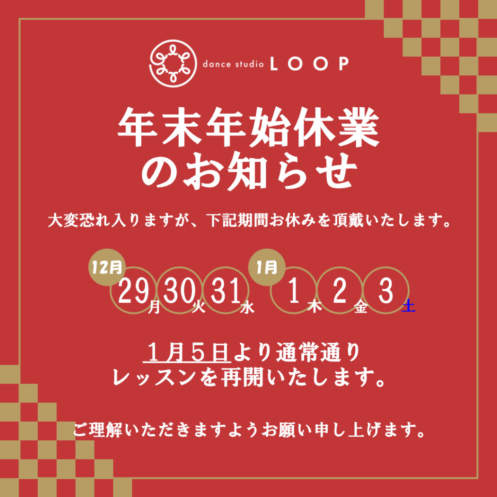 12/29(月)〜1/3(土)年末年始休業を頂きます。